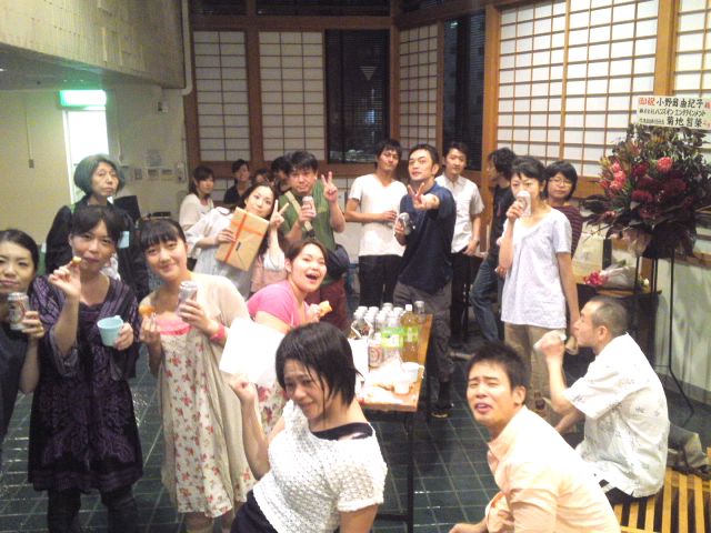 お客様をお送りした後、ロビーで初日乾杯を☆お客様にも参加していただけるのですが、気がついたら身内だけでしたf(^_^;)。