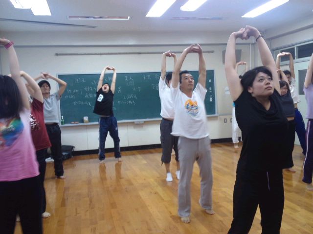 そこで、それからはキャストの山谷さんにリードして頂きながら、身体を縮めずに大きく使えるようにするためのエクササイズを。