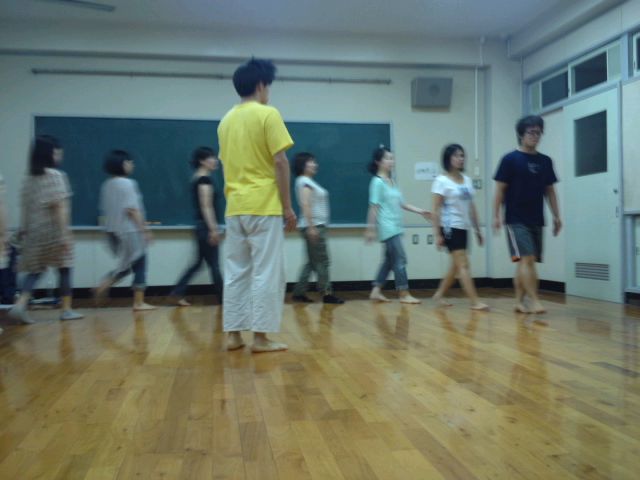 アンサンブルのみんなが挑戦しているのは、体重0のつもりで、ヘリコプターやハチドリのホバリングのように歩く歩き方。これがなかなか難しそう(-"-;)。